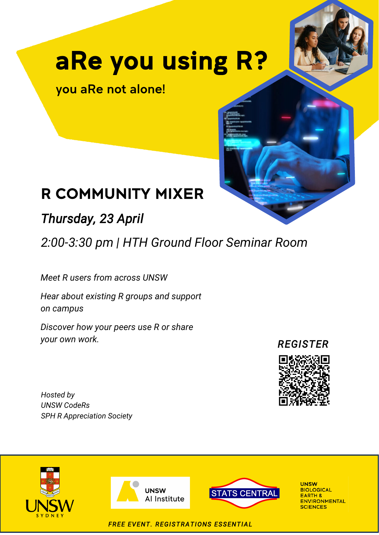 Hosted by the UNSW codeRs Club and the R Appreciation Society, this is your chance to